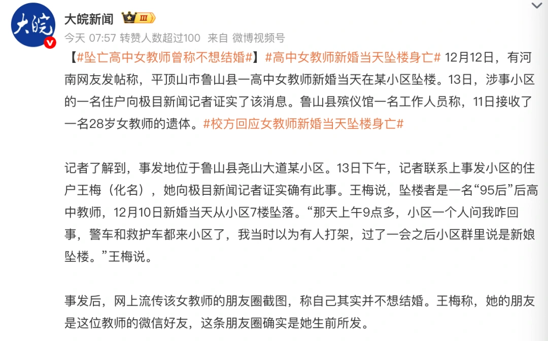 这几天股票配资的流程,全网都在讨论被河南28岁女老师在自己婚礼当天跳楼的新闻。