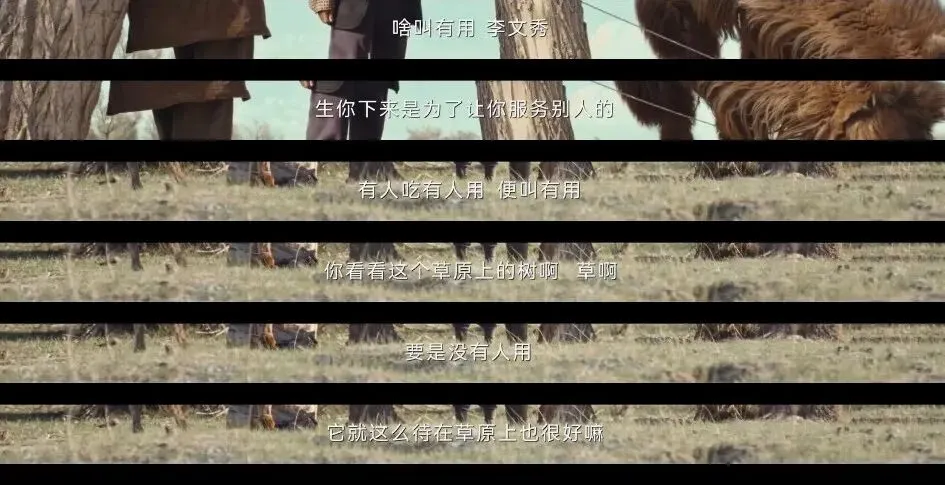 “啥叫有用,我生你下来是为了让你服务别人的? 你看看这个草原上的树啊、草啊,有人吃有人用,便叫有用;要是没有人用,它就这么待在草原上也很好嘛,自由自在的。